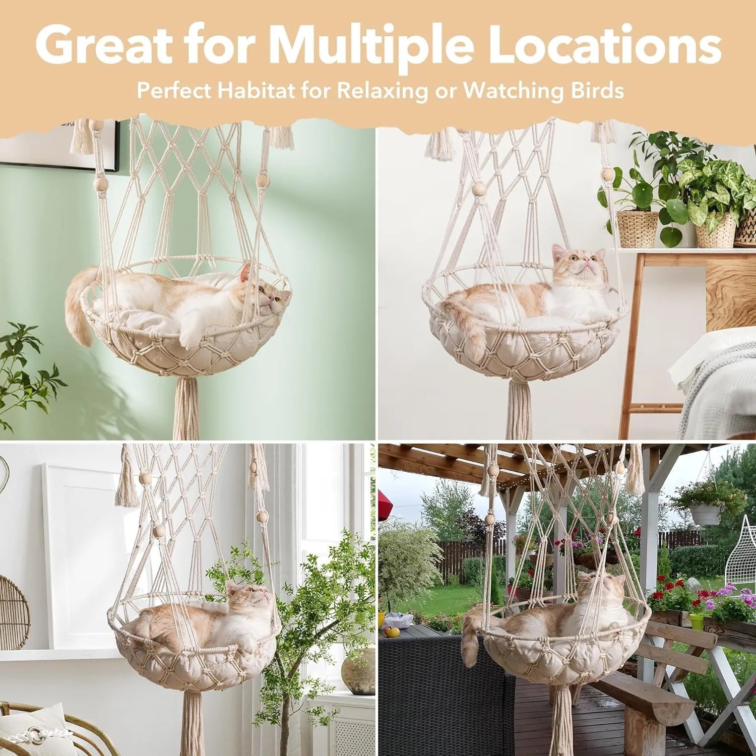【Fashionable Cat Hammock】This cat hammock get rid of the boring and monotonous of traditional cat hammock , with most popular bohemian style, your pet can comfortably perch on this hammock, enjoy a comfortable and cozy life, reduce anxiety and have fun.